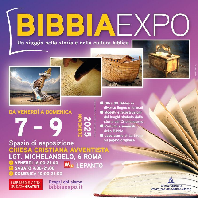 La mostra itinerante Bibbia Expo farà tappa a Roma dal 7 al 9 novembre, allestita negli spazi della chiesa avventista di Lungotevere Michelangelo 6 (zona Prati, metro A, fermata Lepanto).