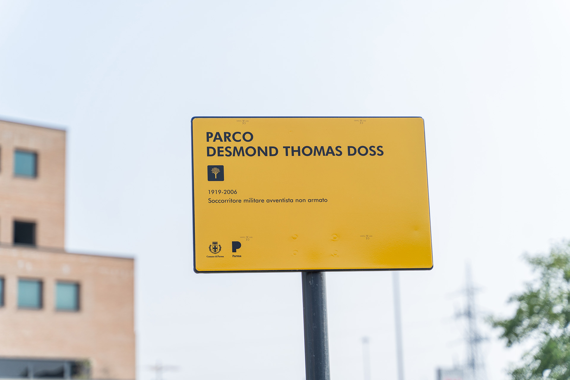 L’iniziativa di intitolare il parco a Doss è nata dalla comunità avventista locale. A proporla per primo è stato Franco Evangelisti, ex pastore della chiesa parmense; a raccoglierne l’eredità è stato il pastore attuale, Giovanni Caccamo, che ha accompagnato l’iter con dedizione fino al riconoscimento ufficiale da parte del Comune di Parma. Alla cerimonia di inaugurazione, vissuta come un momento di incontro e riflessione, erano presenti i rappresentanti delle istituzioni, delle chiese cristiane della città, dei gruppi scout e numerosi cittadini. Il parco è stato inaugurato con parole di speranza, musica, e un messaggio chiaro: la pace non è debolezza, è coraggio consapevole. “Doss ci ricorda che si può essere eroi senza violenza” ha commentato il past. Caccamo “che nei momenti più bui si può ancora scegliere di servire, soccorrere, amare”.