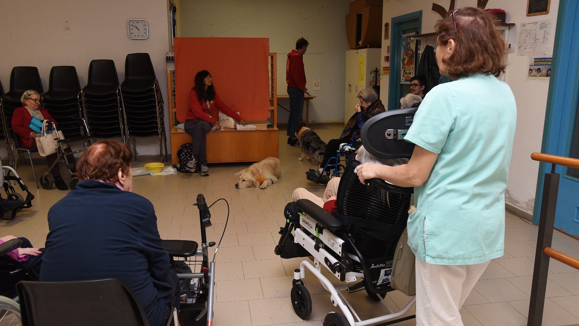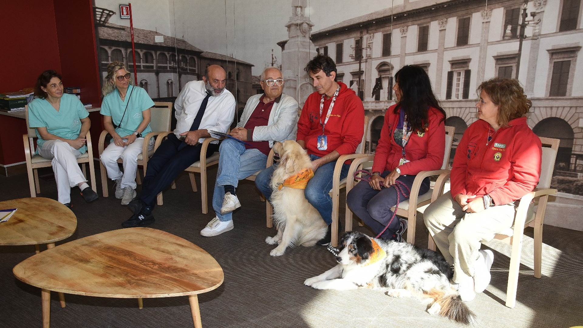 L’iniziativa si svolge in collaborazione con la Fondazione Don Pippo che ha selezionato e preparato Kao e Onda a incontrare gli anziani della casa di riposo forlivese, e con loro ci sono anche due gatti e un coniglio.