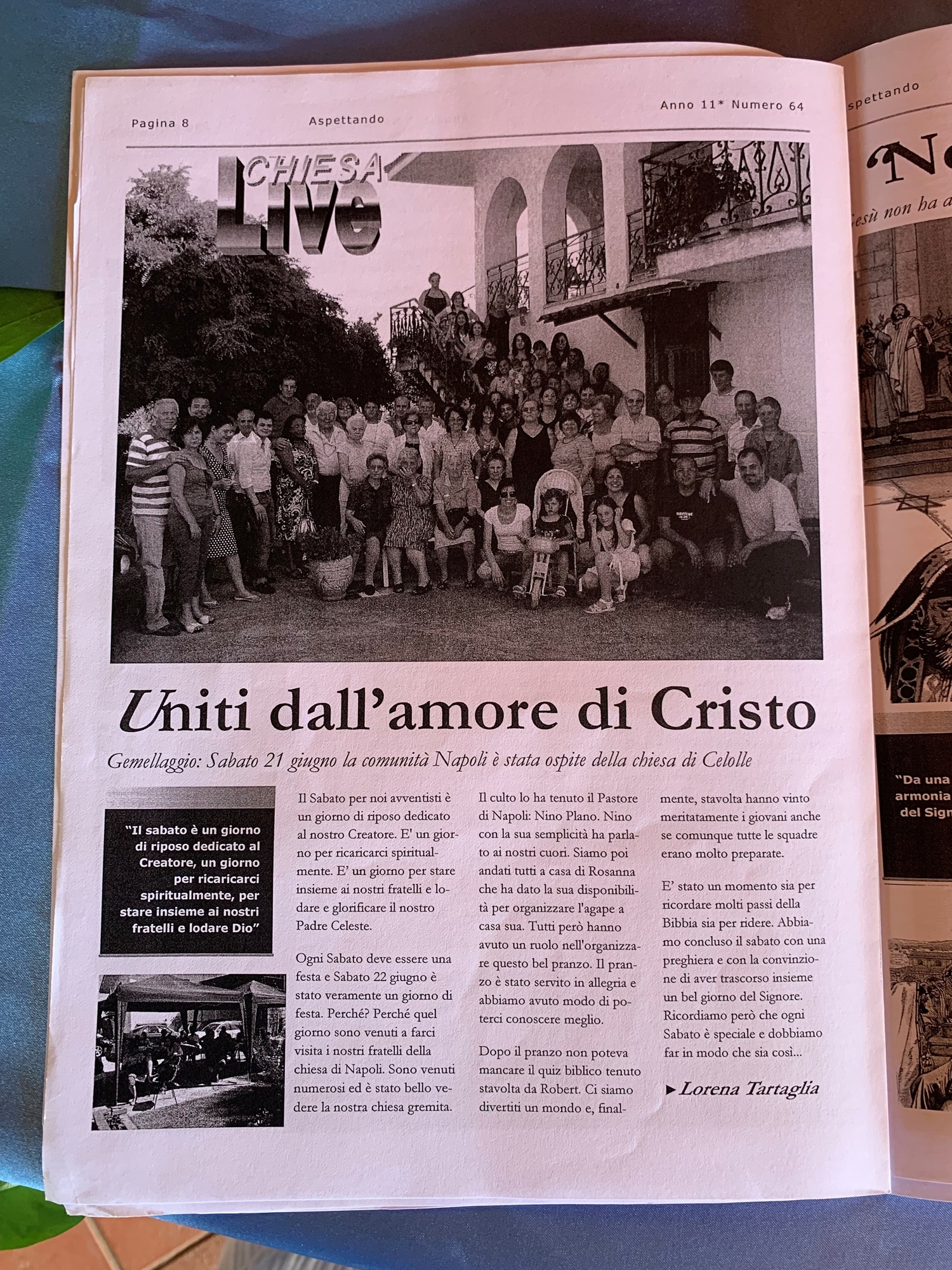 “Uniti dall’amore di Cristo” era il titolo di un articolo della gazzetta locale della comunità avventista di Cellole (CE) sull’ultimo gemellaggio con la chiesa di Napoli. Avvenne 17 anni fa, il 21 giugno 2008.