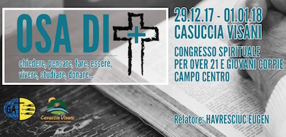 Maol – «Osa di più» è il tema del Congresso spirituale di fine anno organizzato dal Dipartimento Ministeri avventisti per la Gioventù (Mag) per gli over 21 e le giovani coppie (cioè per coloro che sono nella fascia 21-35 anni di età). Si terrà dal 29 dicembre 2017 al 1° gennaio 2018, presso il Centro «Casuccia Visani», a Poppi (AR).