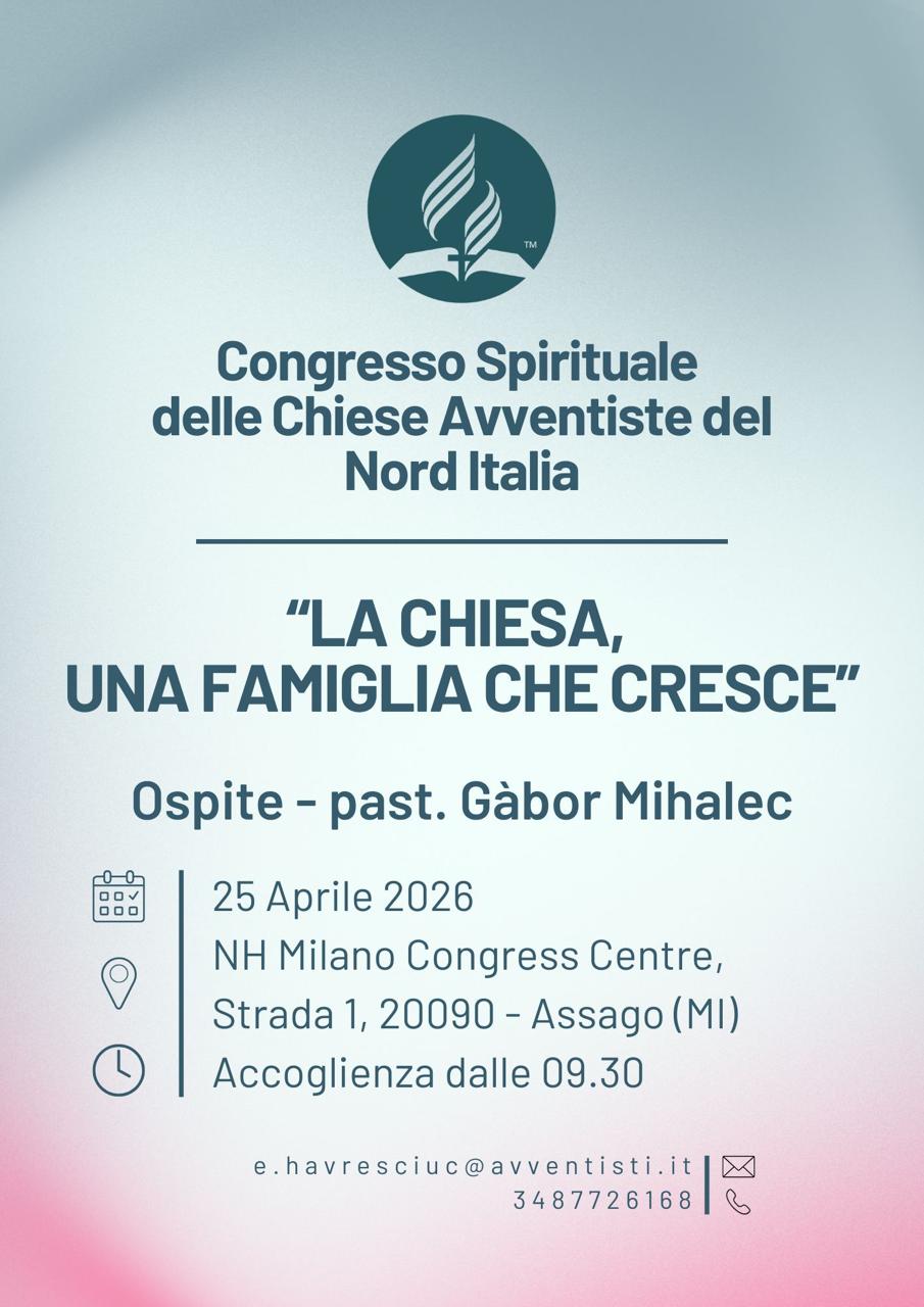 Il tema proposto per l’evento è “La Chiesa, una famiglia che cresce”. Ospite sarà il pastore Gàbor Mihalec, direttore dei Ministeri Avventisti della Famiglia presso Unione avventista ungherese.
