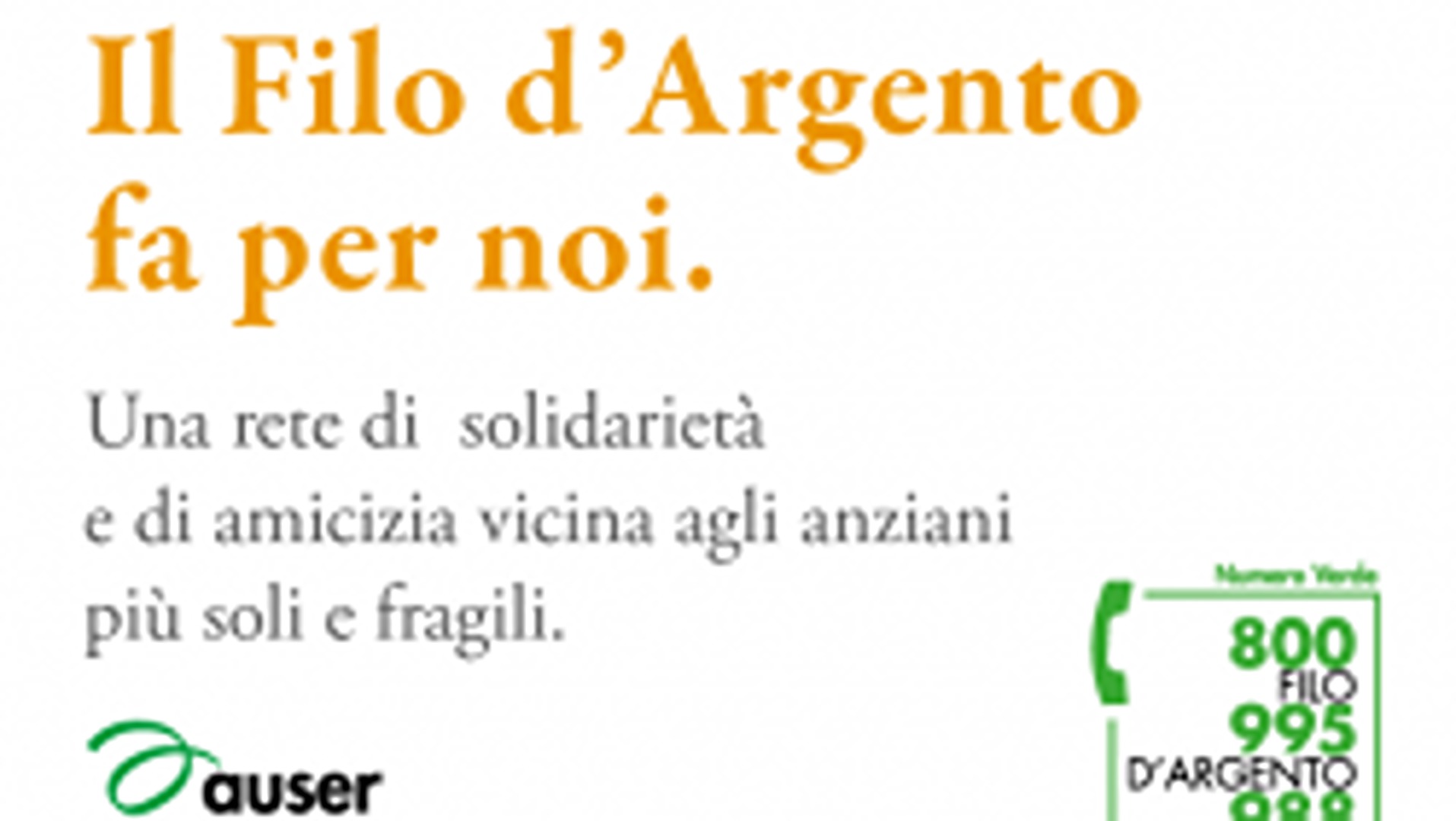 Il numero verde del Filo d’Argento Auser 800.99.59.88, è attivo sette giorni su sette dalle 8 alle 20.