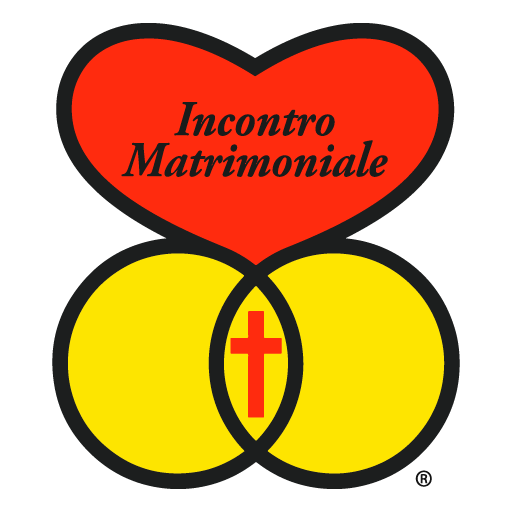 Il logo di Incontro Matrimoniale è un cuore che simboleggia la vita, due cerchi che rappresentano il marito e la moglie, e una croce al centro che rappresenta Cristo e, allo stesso tempo, la Chiesa dove la coppia riceve e anche dà.