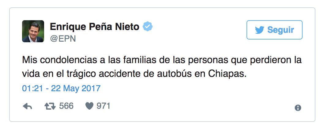 La notizia dell’incidente è stata virale e riportata da diversi media. Anche il presidente del Messico, Enrique Peña Nieto, ha twittato un messaggio di condoglianze alle famiglie.
