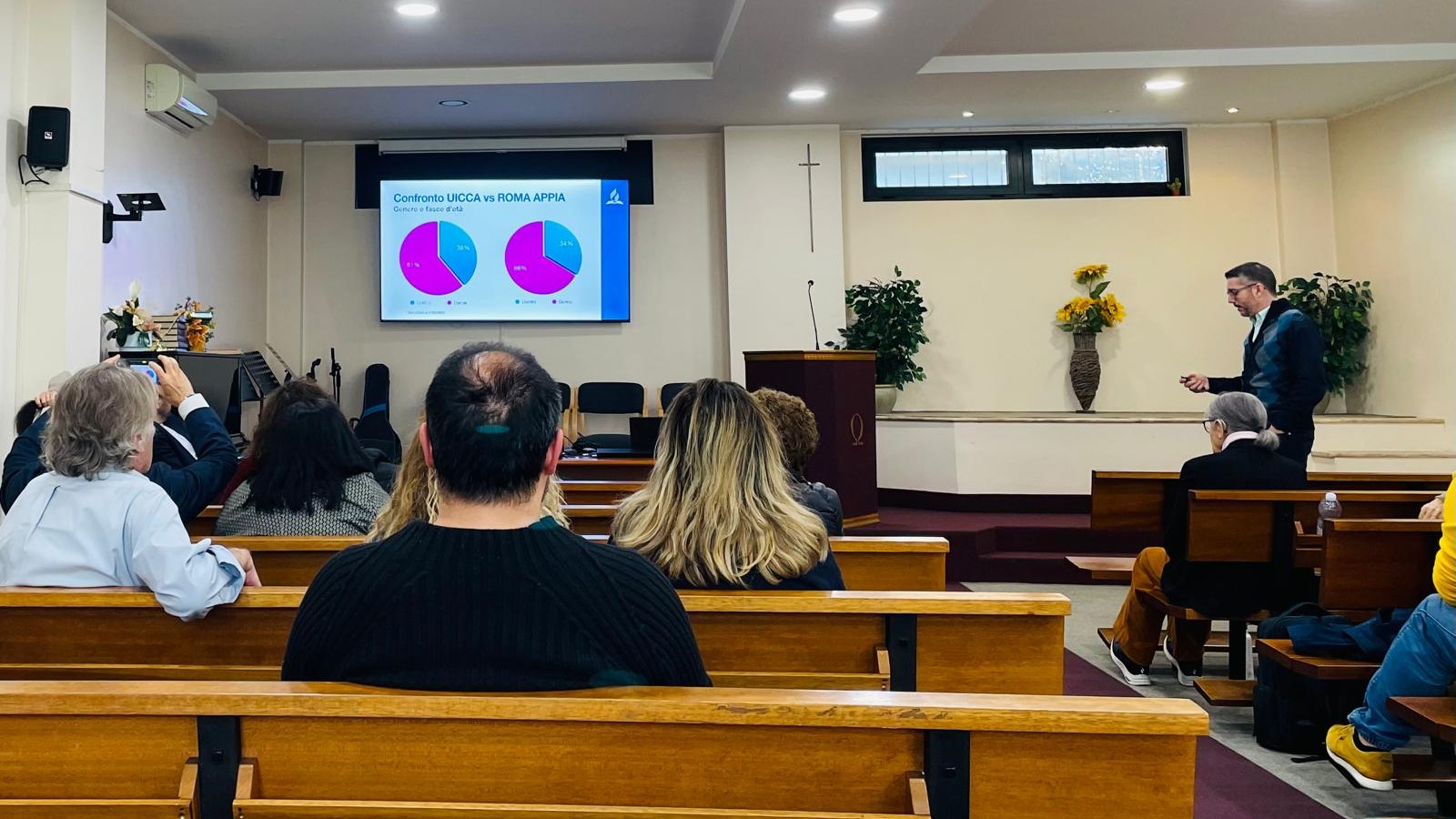 Nel pomeriggio, il past. Barbuscia ha incontrato la chiesa, nella veste di segretario. Ai presenti ha mostrato, tramite le statistiche, la fotografia della realtà della nostra denominazione in Italia e le sfide che l’attendono nella sua missione.
