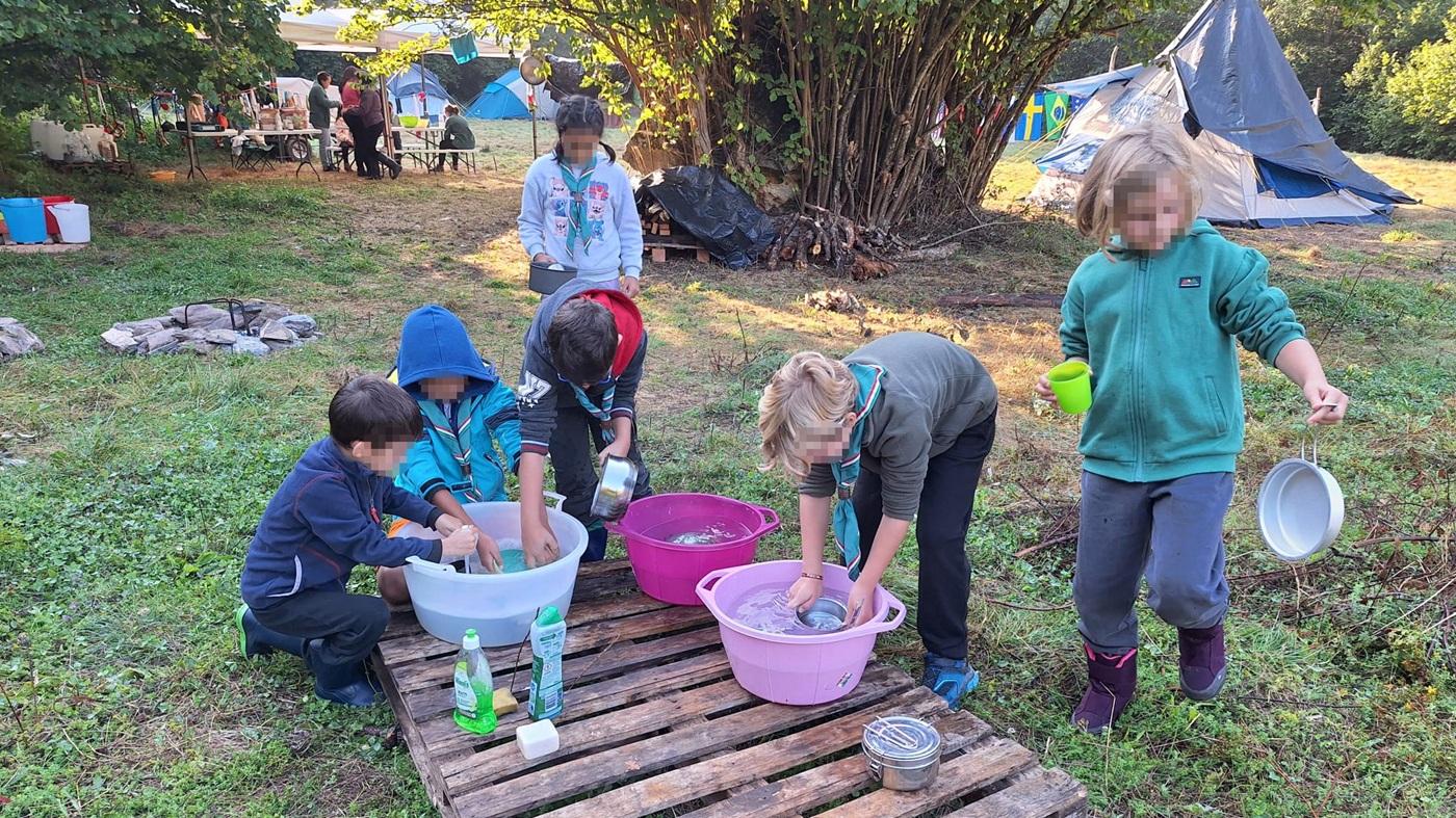 Insieme si sono adoperati per ottenere il distintivo di “Campeggio”, impegnandosi nell’allestimento dell’intero accampamento: tende, cucina, punti acqua, punti fuoco e fuoco da campo, alzabandiera e tenda per le riunioni.