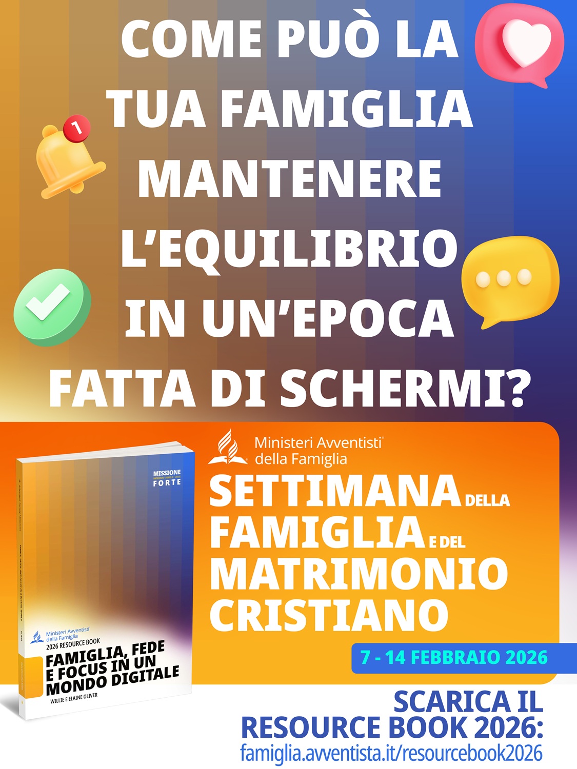 In occasione di questo programma, la Conferenza Generale (o Chiesa avventista mondiale, ndr) ha preparato del materiale contenuto nel Resource Book 2026, dal titolo Famiglia, fede e focus in un mondo digitale, la cui copia cartacea vi arriverà tramite il responsabile della libreria di chiesa. Potete comunque scaricare qui la copia in pdf.