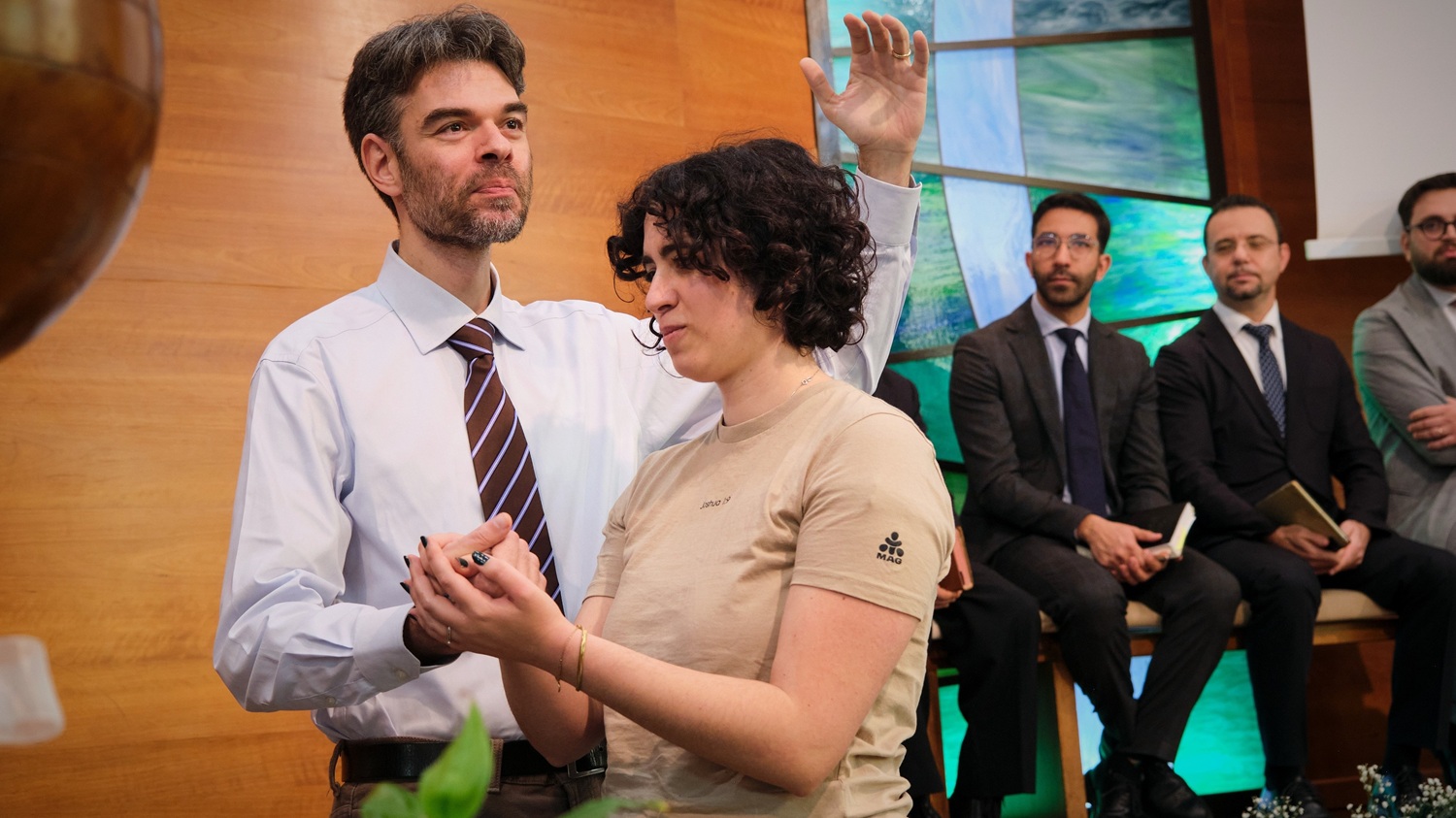 Si è trattato di un evento straordinario. Il locale era pienissimo di amici e parenti desiderosi di condividere questa grande gioia spirituale. L’atmosfera, vibrante e festosa, è stata ulteriormente arricchita e dalla presenza di numerosi pastori provenienti da diverse comunità, oltre al past. Stefano Calà che serve la nostra chiesa torinese, ognuno dei quali ha avuto un ruolo significativo nella celebrazione.
