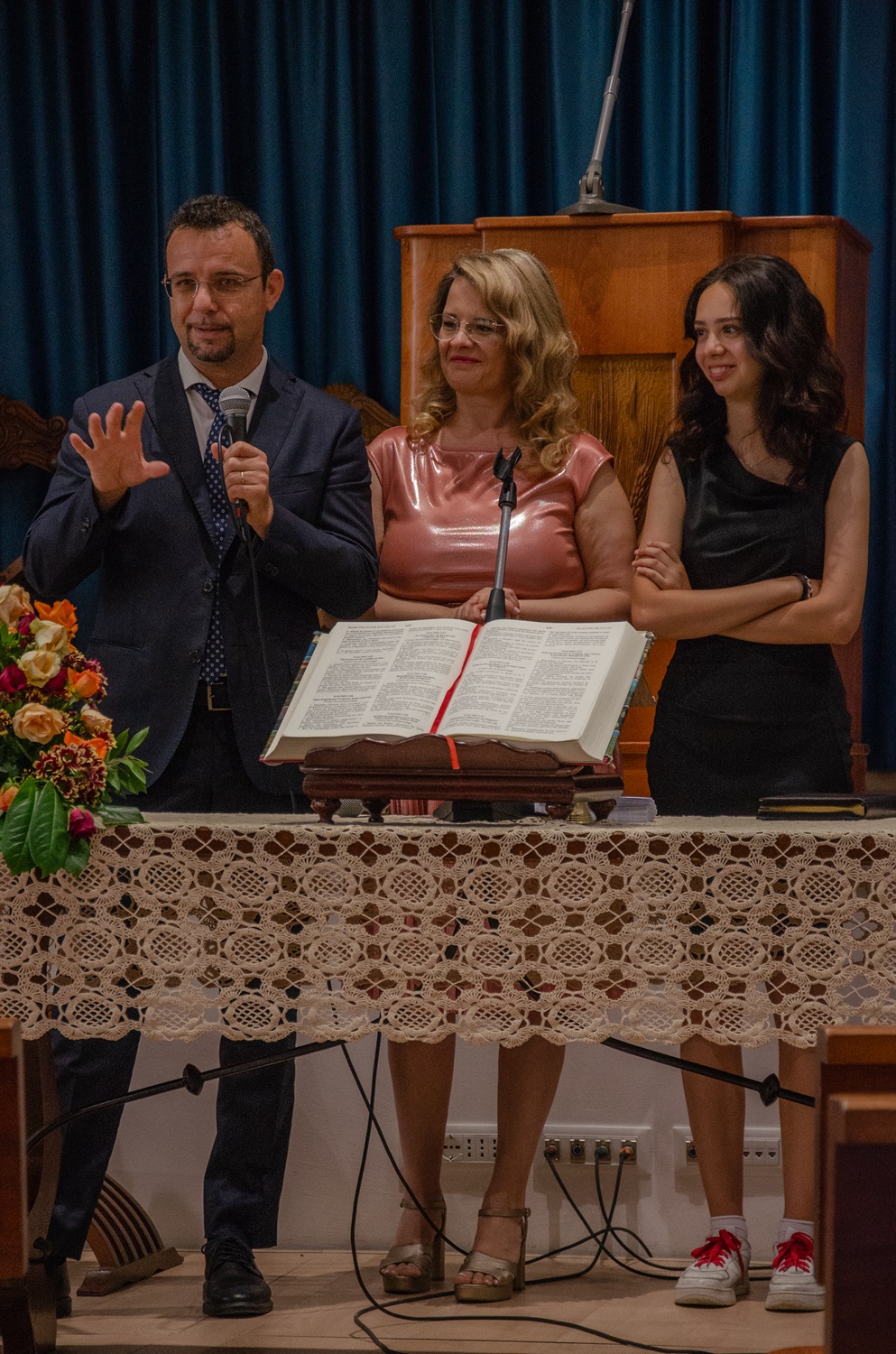 Adriana Bulzis – Sabato 6 luglio è stata una giornata ricca di emozioni nella comunità avventista di Trieste. Da una parte, avevamo la gioia di conoscere il nuovo pastore, Robert Caciula, e la sua famiglia; dall’altra parte, vi era la tristezza di dover salutare il past. Michele Gaudio e sua moglie Valentina Macaru che sono stati con noi per dieci anni. Un gesto simbolico ha rappresentato l’avvicendamento pastorale quando i coniugi Gaudio hanno consegnato le chiavi della chiesa al past. Caciula e alla sua consorte. Da parte nostra, non è mancata la preghiera al Signore perché possa continuare a benedire queste due famiglie nel loro servizio pastorale alla gloria di Dio.