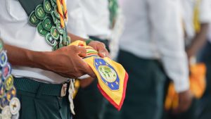 Elemento importante della divisa scoutistica, il fazzoletto reca in sé una serie di significati nella forma e nel colore. La sagoma triangolare rappresenta la trilogia dello sviluppo della persona: fisico, mentale e spirituale. E poi c’è il colore. “Per me, il colore giallo rappresenta l’eccellenza in tutto ciò che si fa, l’eccellenza nel mettersi alla presenza di Dio e nel fare del proprio meglio per gli altri, affinché Gesù ritorni presto” ha sottolineato il past. Julimar Gualberto, dirigente della Chiesa avventista del Minas Gerais orientale.