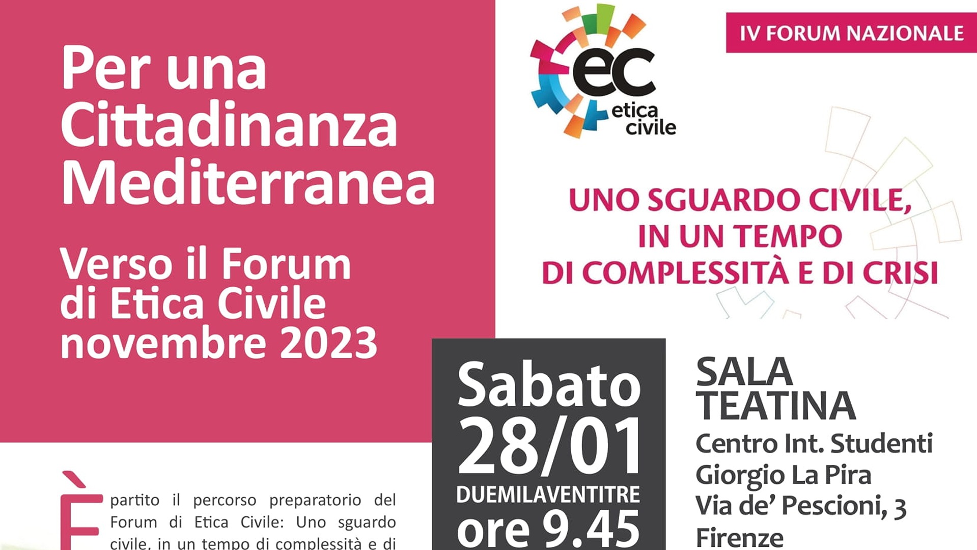 E' partito il percorso preparatorio del Forum di Etica Civile: Uno sguardo civile, in un tempo di complessità e di crisi Palermo 18-19 novembre 2023.